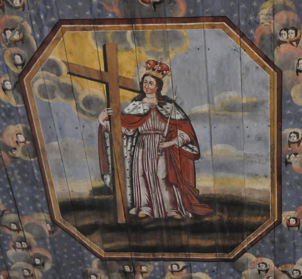 Święta Helena na polichromii na stropie kościoła w Bartągu. (fot. KM)