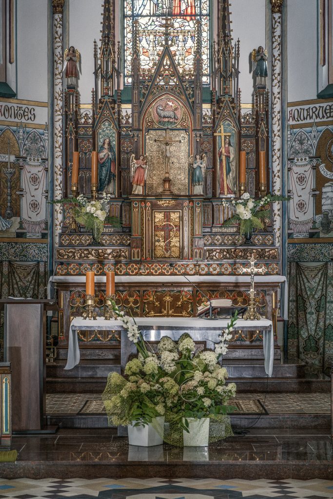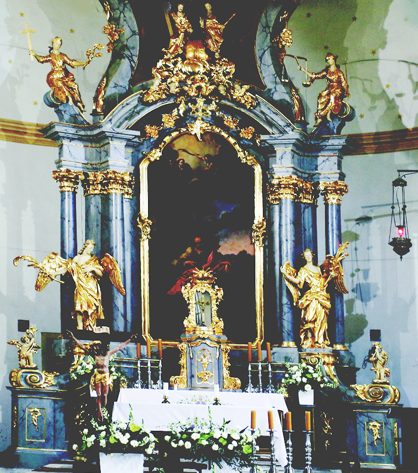 Rokokowy ołtarz główny kościoła w Bisztynku wykonał w 1772 roku, pochodzący z Reszla Chrystian Bernard Schmidt. Jest on autorem wielu ołtarzy w kościołach warmińskich. (fot. KM)