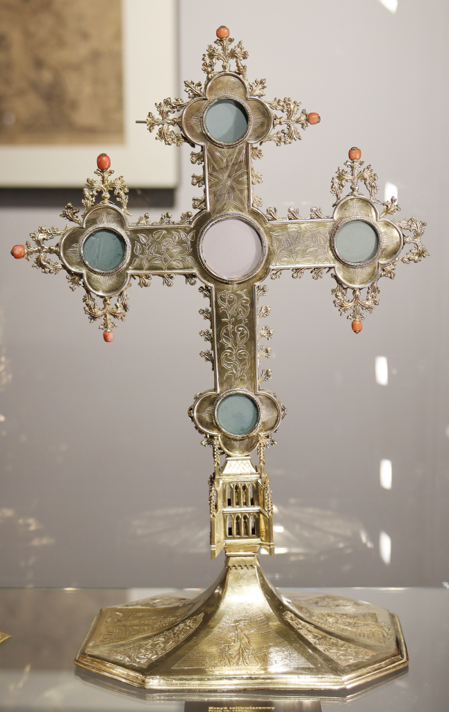 Znajdujący się w zbiorach Archidiecezji Warmińskiej krzyż relikwiarzowy z ok. 1450 r. pochodzący z kościoła w Sząbruku. (fot. KM)