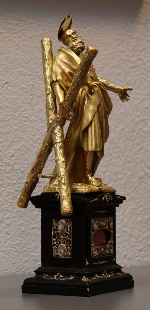 Relikwiarz św. Andrzeja ze zbiorów Muzeum Archidiecezji Warmińskiej.