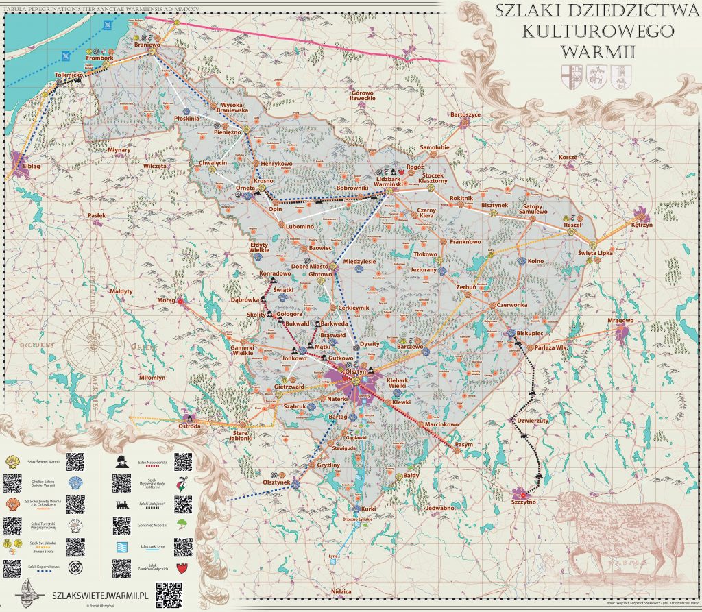 Dlatego Szlak Świętej Warmii to wielowątkowa, wielowymiarowa podróż przez nieodkrytą jeszcze w pełni krainę. Łącząca wielowiekową tutaj tradycję pielgrzymowania (w miejscowej gwarze łosier) ze współczesną turystyką religijną czy kulturową, z ideą slow life, elementami filozofii etno i eko. Podróżnik znajdzie na niej wszystko: wyjątkowe bogactwo architektury sakralnej, miejsca kultu religijnego, ślady słynnych postaci i historycznych wydarzeń, tradycje kulinarne, swoistą gwarę oraz współczesną sztukę małych manufaktur, rękodzieła, ekorolnictwa. Jest tu i przyroda, do której trudno nie mieć słabości. Wszystko to tworzy unikalny w skali Europy produkt turystyczny.